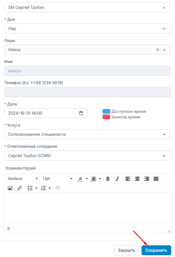 • Коментар: Перевірте правильність усіх даних і натисніть «Зберегти».
