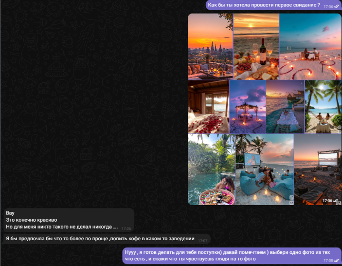 Після спілкування 10 хвилин на вільні теми, відправляємо фото угоди і пишемо як на прикладі фото.